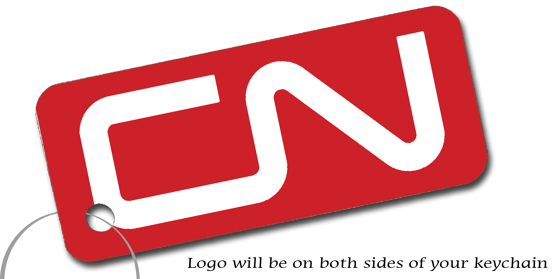 Keychains come on glossy plastic, measuring 3 x 1.25 inches. Image appears on both sides.